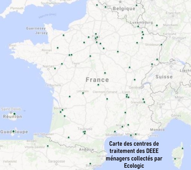 Depuis 2006 et la mise en place d’une règlementation environnementale spécifique, le recyclage est effectué localement partout en France et dans certains pays limitrophes (notamment pour certains matériaux qui nécessitent un traitement particulier).