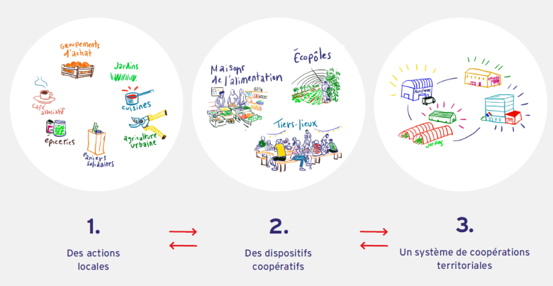 Concrètement, nous expérimentons la démocratie alimentaire en accompagnant des collectifs d'habitant.es qui travaillent ensemble à mieux comprendre le système alimentaire, à politiser l'alimentation et à se mobiliser pour sensibiliser les autres, agir et défendre un accès à une alimentation de qualité et durable pour tous et toutes. Nous mettons également en place des assemblées citoyennes de mangeur.ses pour imaginer une gouvernance collective partagée des politiques alimentaires. Enfin, à Montpellier, nous lançons dès septembre 2022, un Comité local d'habitant.es qui aura pour objectif de gouverner une caisse alimentaire commune.
